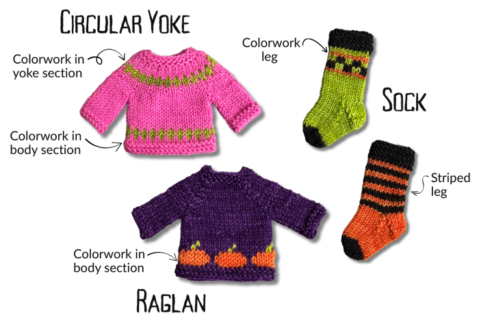 Choose your shape: circular yoke sweater, raglan sweater, or sock.